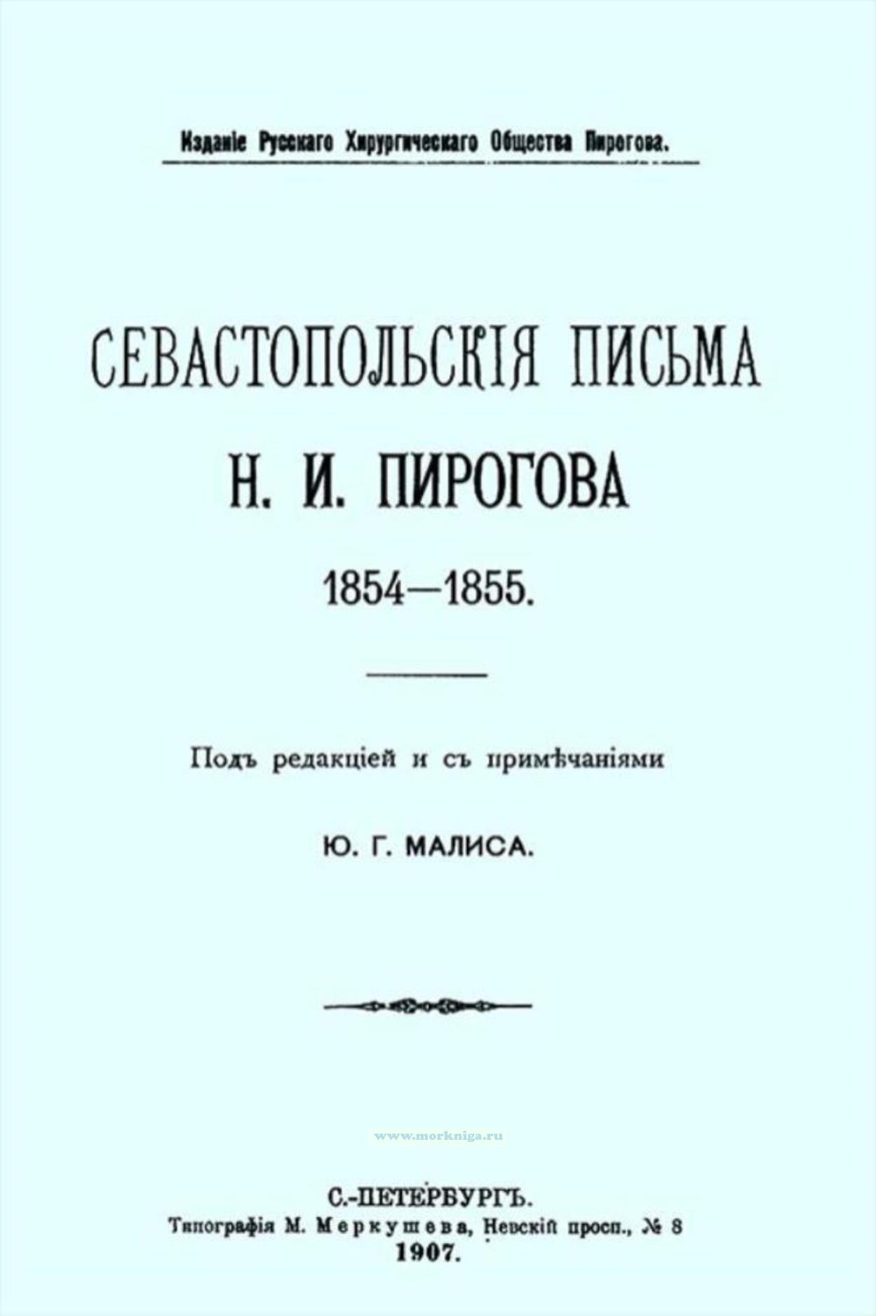 Оригиналы "Севастопольских писем" были переданы сыном Николая Ивановича Пирогова, Владимиром Николаевичем, Русскому Хирургическому Обществу Пирогова. Последнее возложило на нас поручение приготовить эти письма к печати.