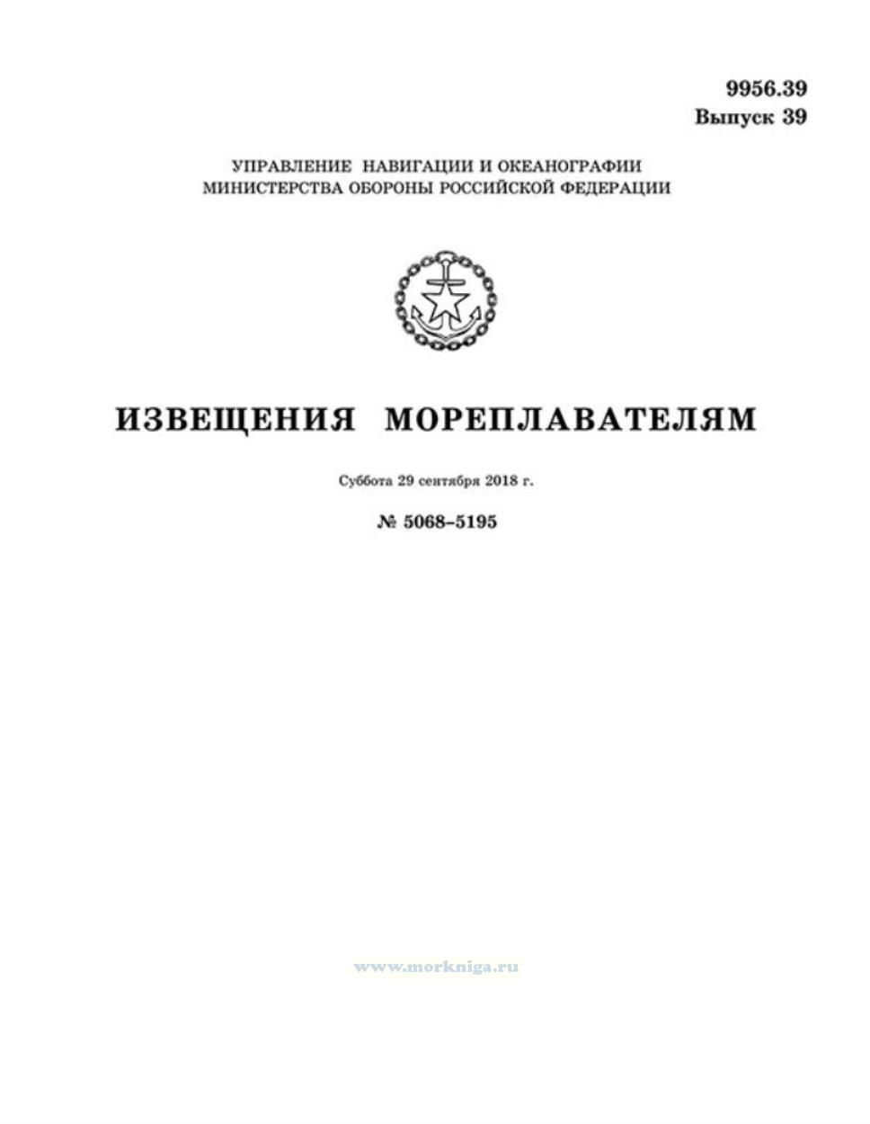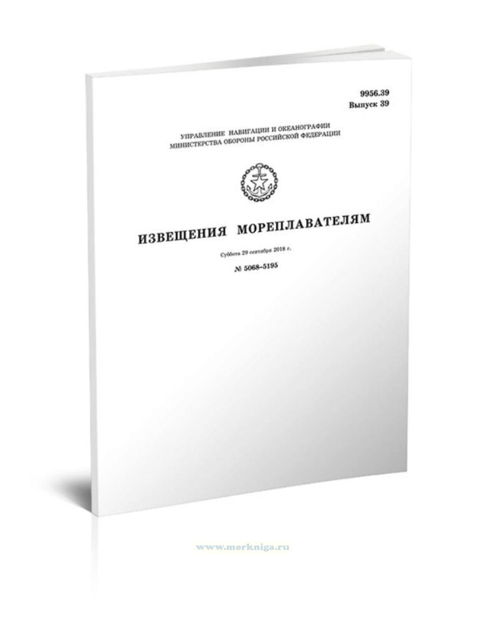Извещения мореплавателям. Выпуск 39. № 5068-5195 (от 29 сентября 2018 г.) Адм. 9956.39