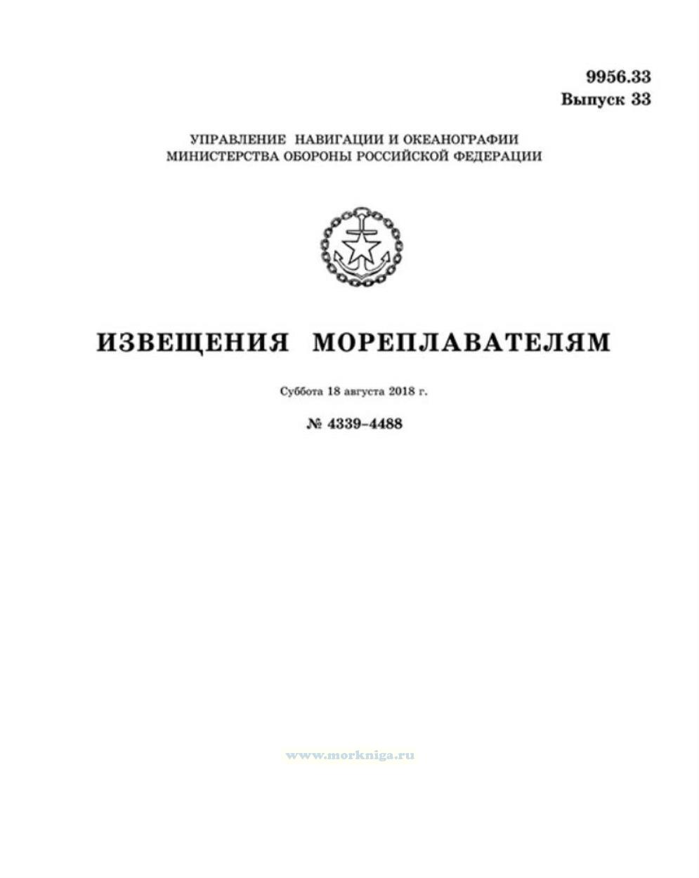 Извещения мореплавателям. Выпуск 33. № 4339-4488 (от 18 августа 2018 г.) Адм. 9956.33