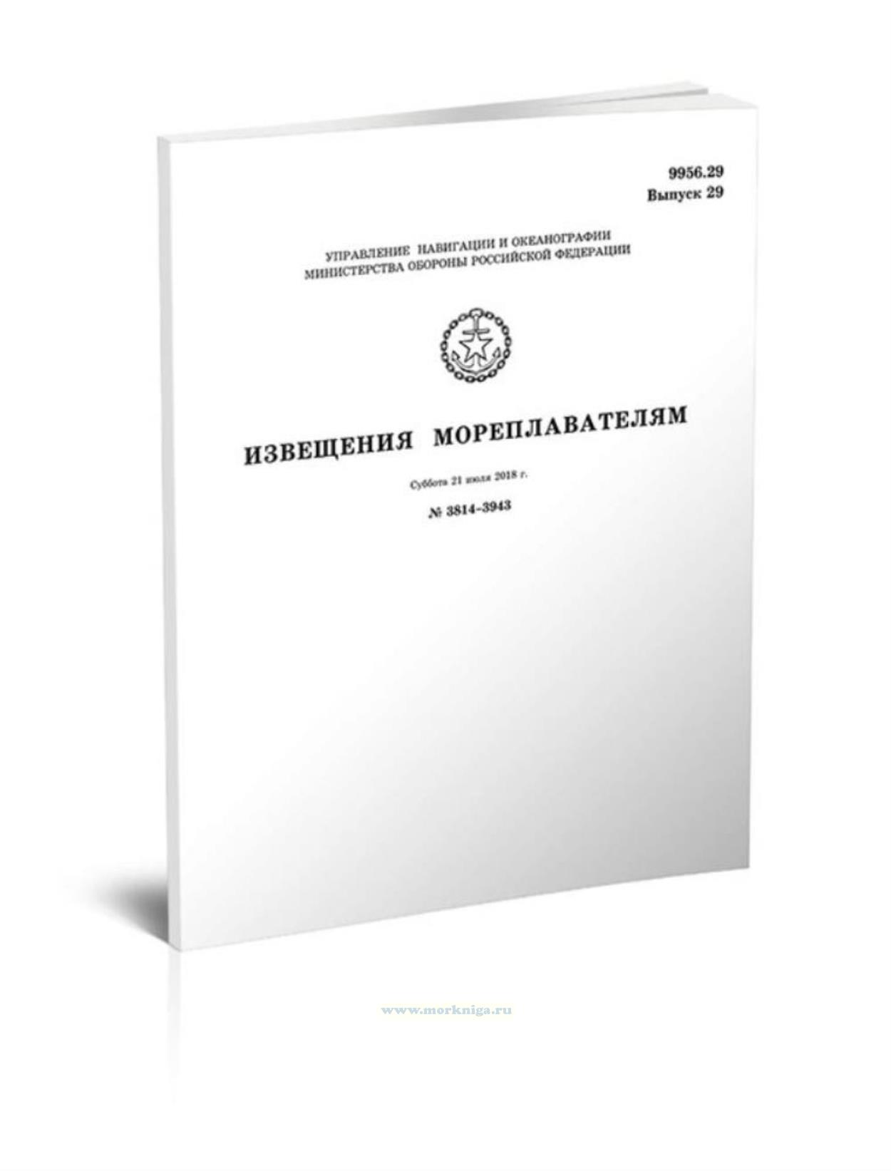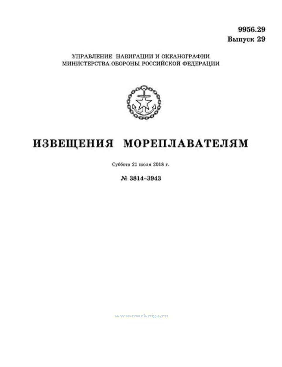 Извещения мореплавателям. Выпуск 29. № 3814-3943 (от 21 июля 2018 г.) Адм. 9956.29