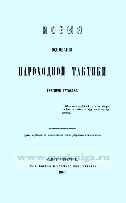 Итак, в предлагаемом теперь на суд морского сословия сочинении, вопрос о действиях паровых судов, отдельно или в эскадре, взят с корня, т.е. с круга описываемого кораблем, и в нем даны, на основании положительных данных и законов, подробные указания каждому исполнителю в чем должна, при известном маневре или эволюции, состоять его роль, делающаяся через то легко исполнимою при самых сложных передвижениях, именно же: на сколько румбов (кладя руль на борт) он должен поворотить вправо, или влево; когда поставить прямо руль; когда застопорить или пустить в ход машину, и когда опять класть руль на борт в ту или другую сторону.