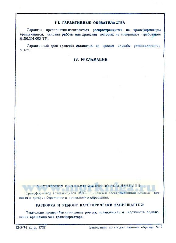Трансформатор вращающийся МВТ-2А является электромашиной высокой точности и требует бережного и правильного обращения.