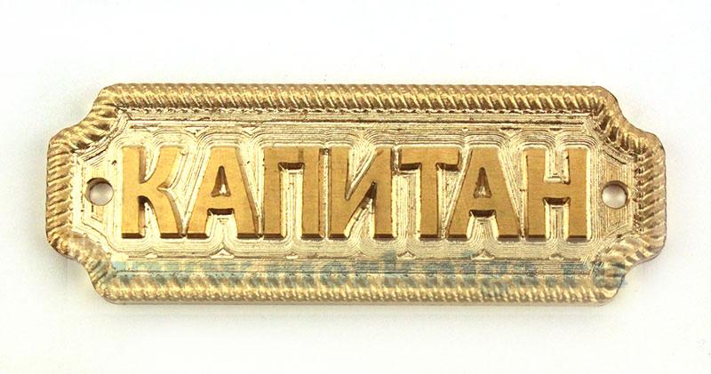 Металлическая табличка "Капитан" создана в привлекательном золотистом цвете, служит одновременно украшением и информационным указателем.