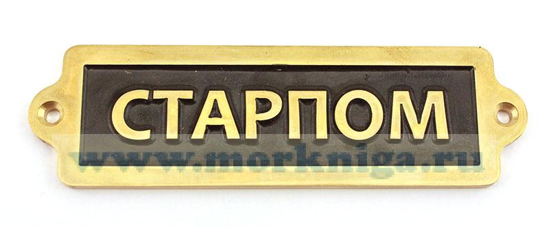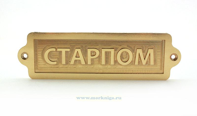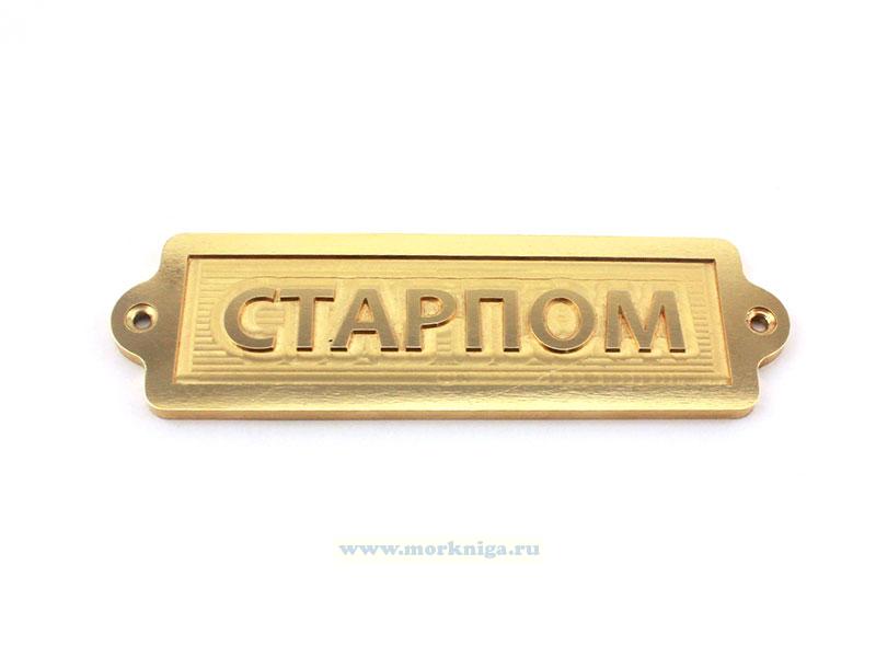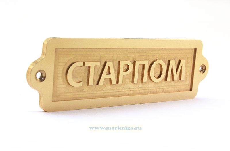 Металлическая табличка "Старпом" создана в привлекательном золотистом цвете, служит одновременно украшением и информационным указателем.