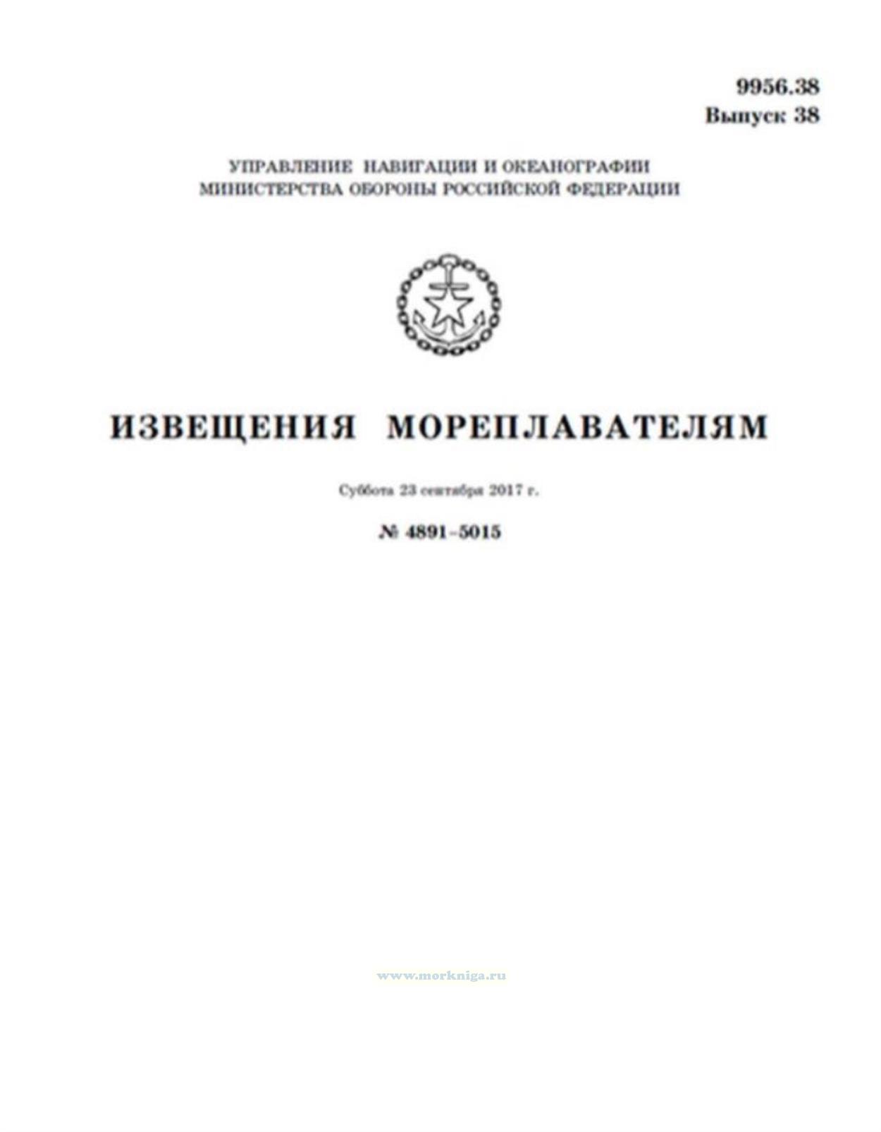 Извещения мореплавателям. Выпуск 38. № 4891-5015 (от 23 сентября 2017 г.) Адм. 9956.38