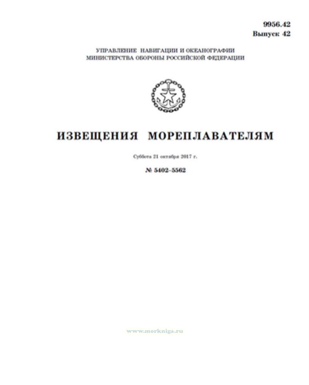 Извещения мореплавателям. Выпуск 42. № 5402-5562 (от 21 октебря 2017 г.) Адм. 9956.42
