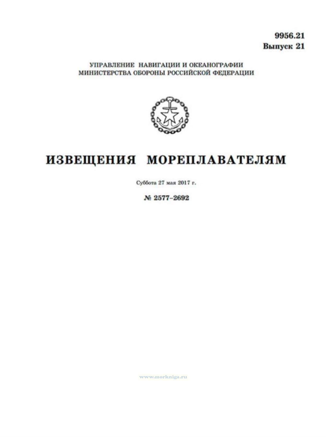 Извещения мореплавателям. Выпуск 21. № 2577-2692 (от 27 мая 2017 г.) Адм. 9956.21