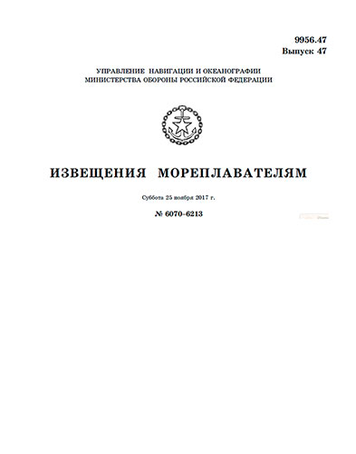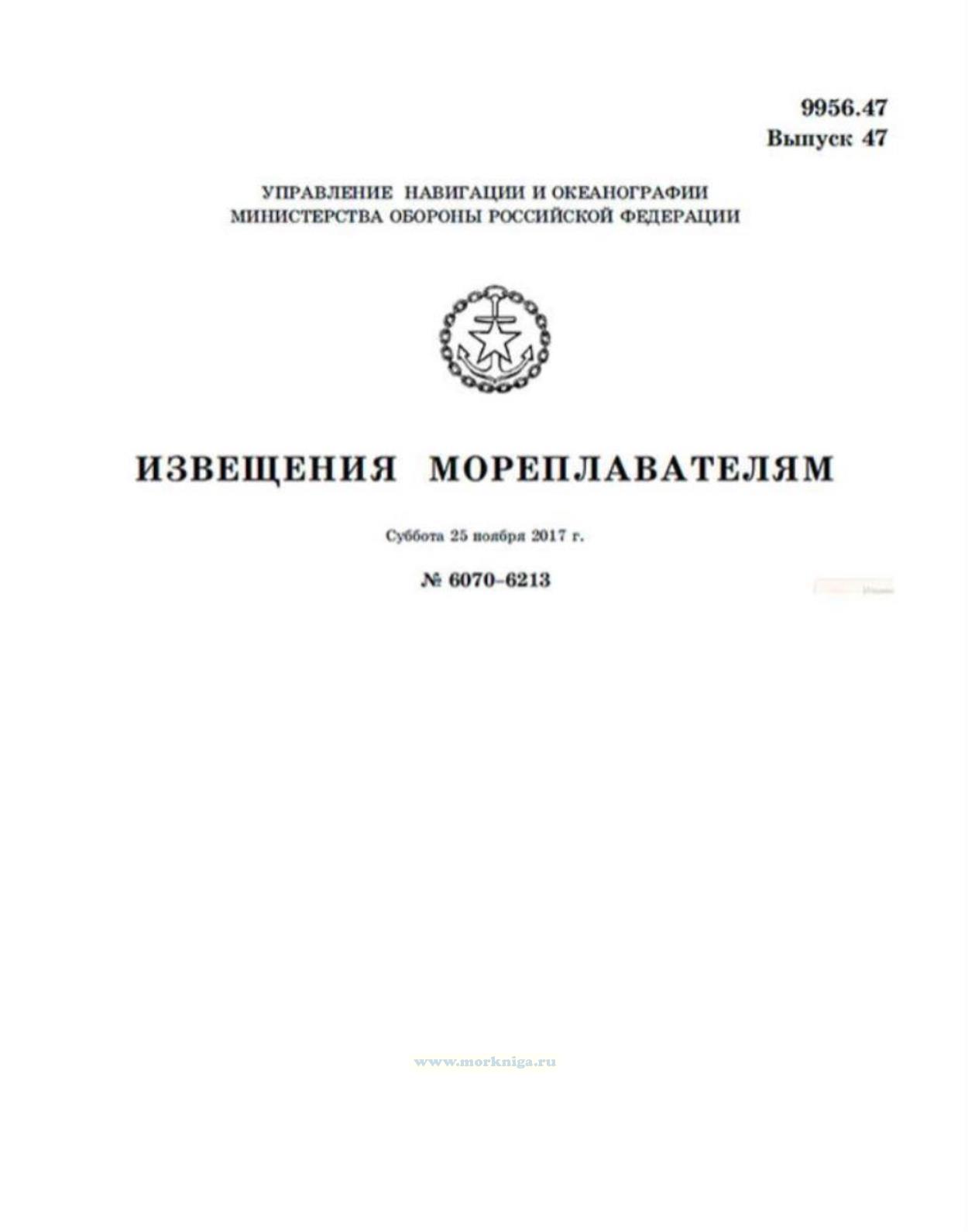 Извещения мореплавателям. Выпуск 47. № 6070-6213 (от 25 ноября 2017 г.) Адм. 9956.47