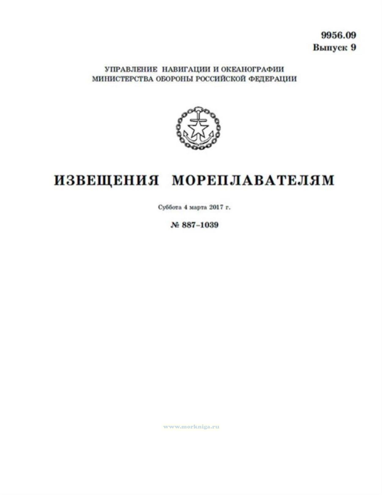 Извещения мореплавателям. Выпуск 9. № 887-1039 (от 4 марта 2017 г.) Адм. 9956.09