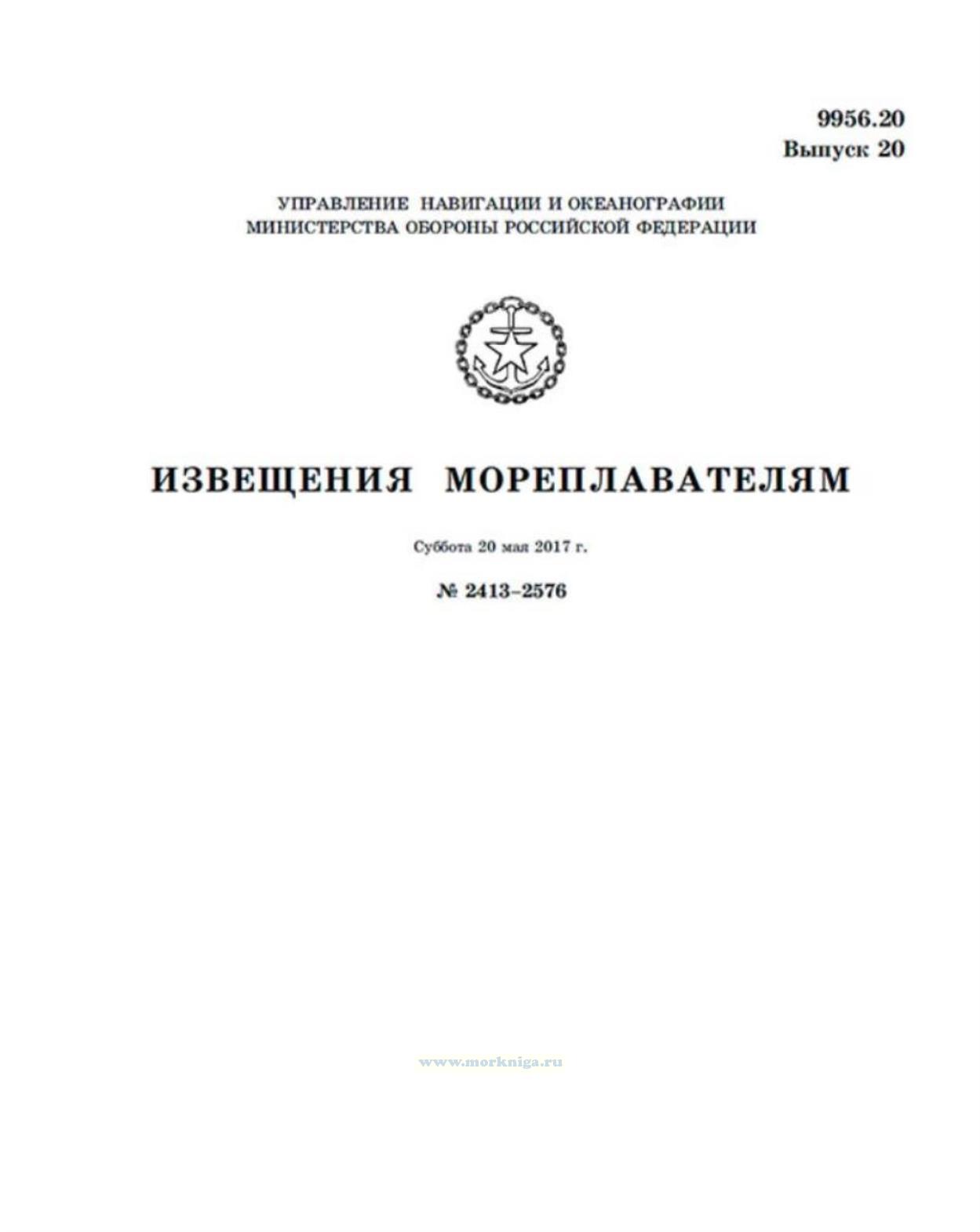 Извещения мореплавателям. Выпуск 20. № 2413-2576 (от 20 мая 2017 г.) Адм. 9956.20