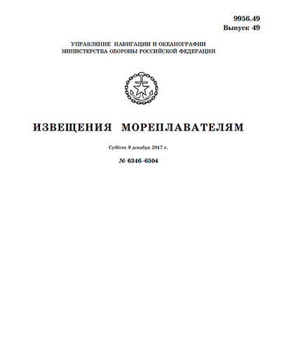 Извещения мореплавателям. Выпуск 49. № 6346-6504 (от 9 декабря 2017 г.) Адм. 9956.49