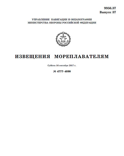 Извещения мореплавателям. Выпуск 37. № 4777-4890 (от 16 сентября 2017 г.) Адм. 9956.37