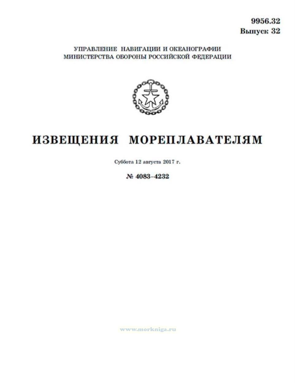 Извещения мореплавателям. Выпуск 32. № 4083-4232 (от 12 августа 2017 г.) Адм. 9956.32