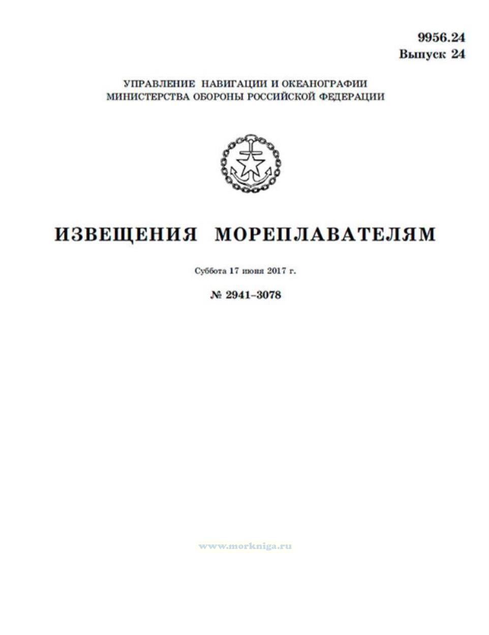 Извещения мореплавателям. Выпуск 24. № 2941-3078 (от 17 июня 2017 г.) Адм. 9956.24