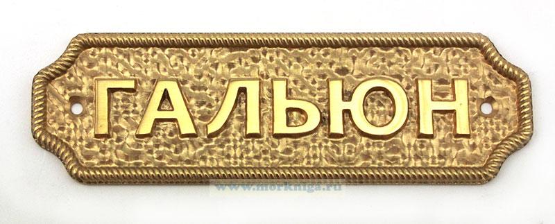 Табличка "Гальюн" создана в привлекательном золотистом цвете, служит одновременно украшением и информационным указателем.