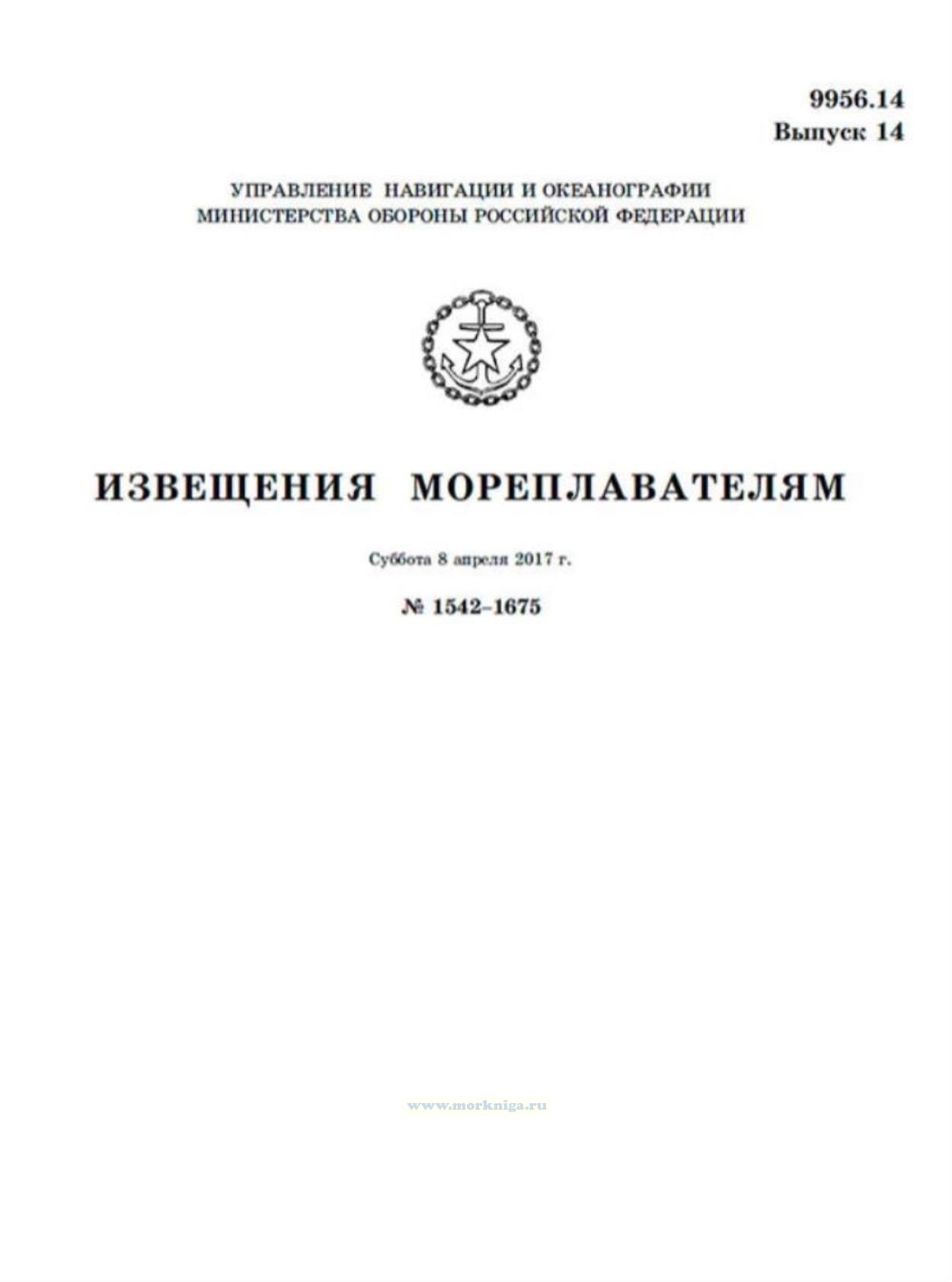 Извещения мореплавателям. Выпуск 14. № 1542-1675 (от 8 апреля 2017 г.) Адм. 9956.14