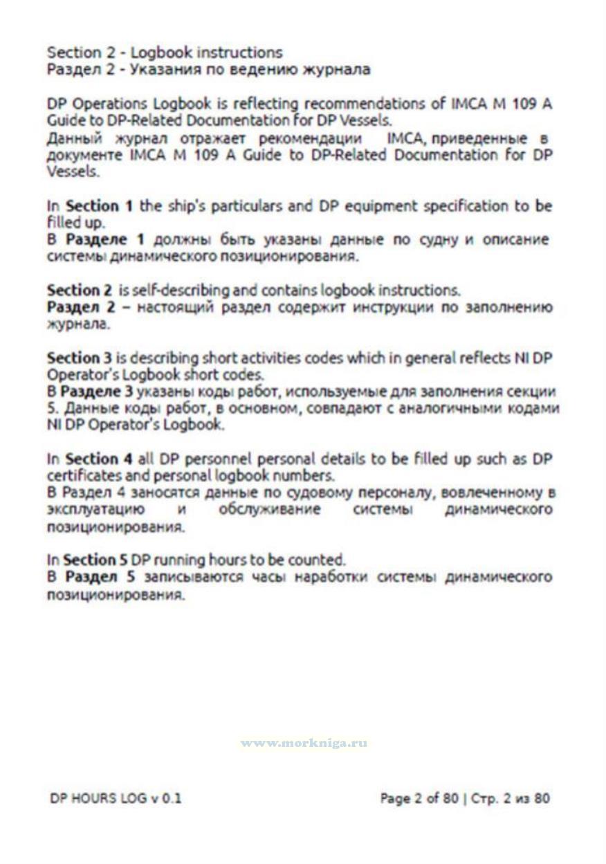 Данный журнал отражает рекомендации IMCA, приведенные в документе IMCA M 109 A Guide to DP-Related Documentation for DP Vessels.