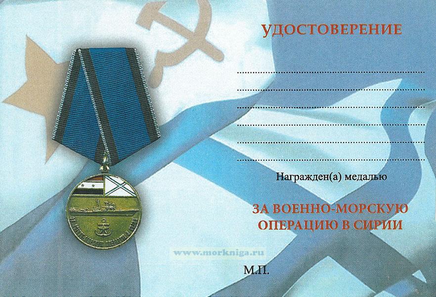 Медаль "За военно-морскую операцию в Сирии" продается с незаполненым бланком удостоверения