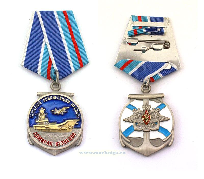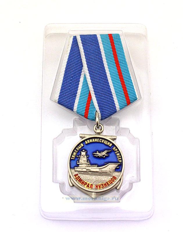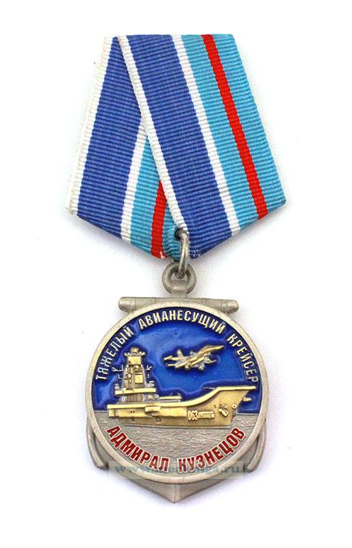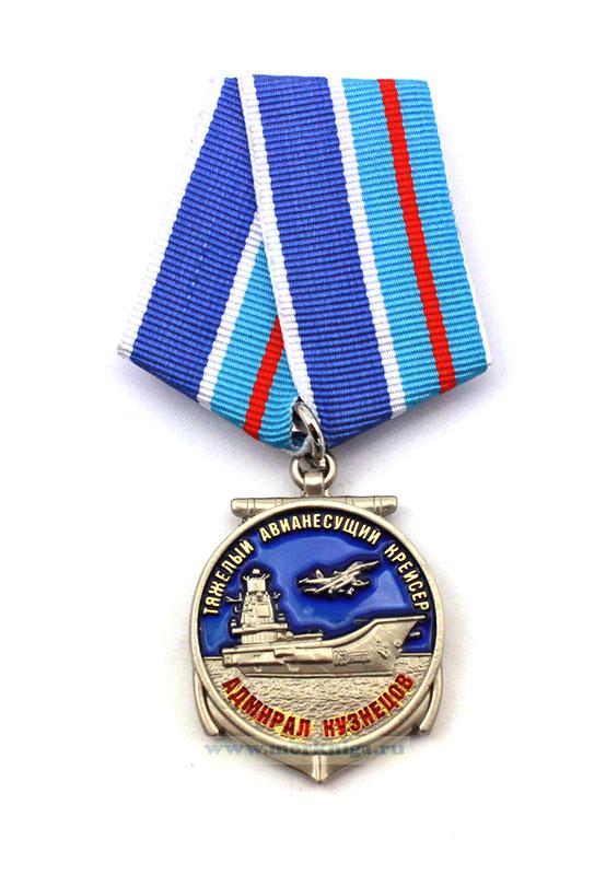 Медаль "Тяжелый авианесущий крейсер "Адмирал Кузнецов" представляет собой правильный круг, изготовленный из металла серого цвета с выпуклым бортом. На лицевой стороне медали изображен крейсер «Адмирал Кузнецов» с взлетающим с его борта истребителем. Изображение - рельефное на фоне синего неба и серого моря. В верхней части медали Кузнецова находится изогнутая надпись желтого цвета « тяжелый авианесущий крейсер», в нижней части надпись тоже изогнута и гласит - «адмирал кузнецов» и выполнена красным цветом.