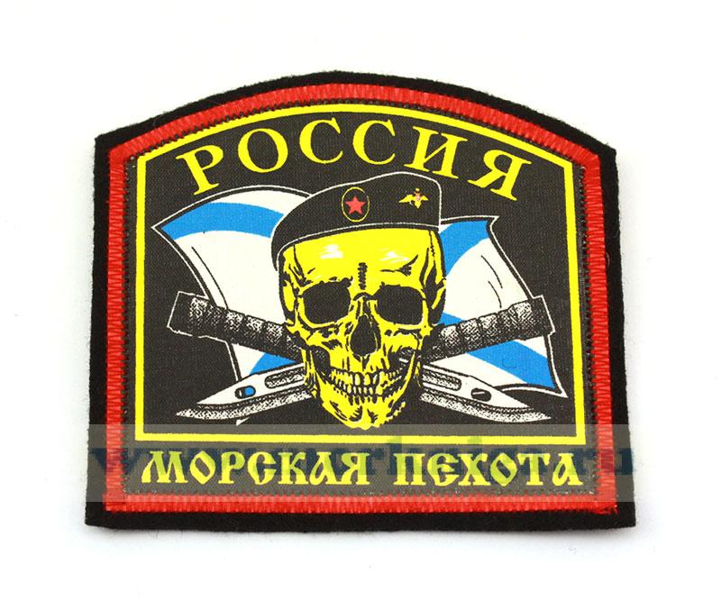 Нашивка нарукавная "Россия. Морская пехота" (с черепом)