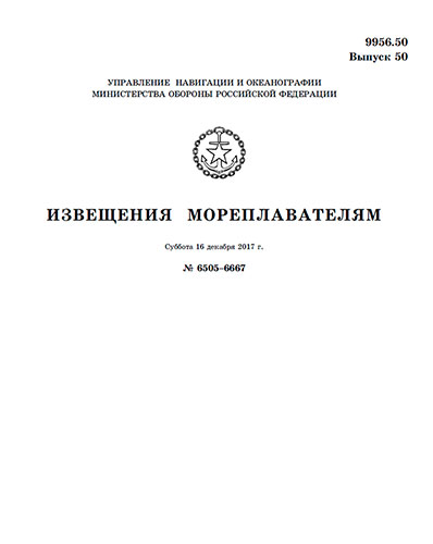 Извещения мореплавателям издаются Управлением навигации и океанографии Минобороны России еженедельными выпусками.