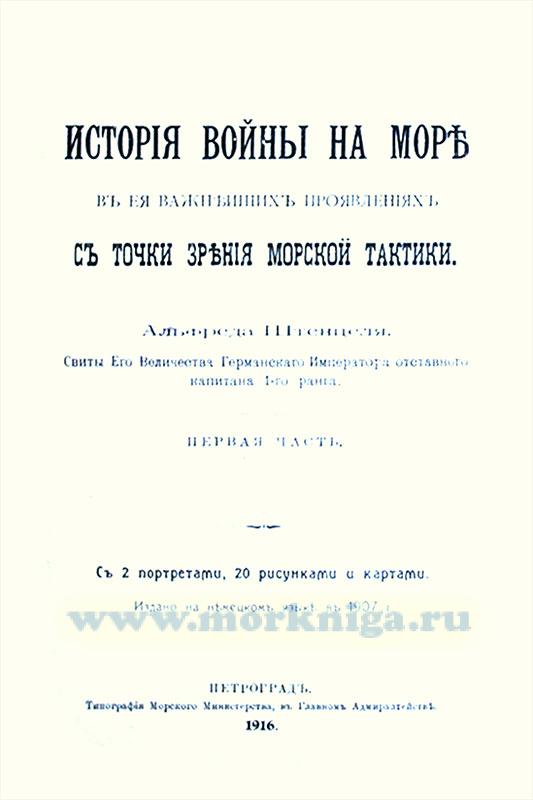 Желание восполнить этот пробел и заставило Редакцию "Морского Сборника" предпринять печатание перевода труда немецкого военно-морского писателя Альфреда Штенцеля "История войны на море в ее важнейших проявлениях с точки зрения морской тактики", вышедшего в Германии в 1907-11 гг. в 5-ти частях, уже после смерти автора, по материалам, обработанных капитаном 1 ранга Р.Дитмаром и вице-адмиралом Кирхгофом.