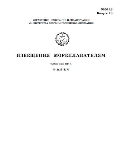 Извещения мореплавателям. Выпуск 18. № 2126-2275 (от 6 мая 2017 г.) Адм. 9956.18