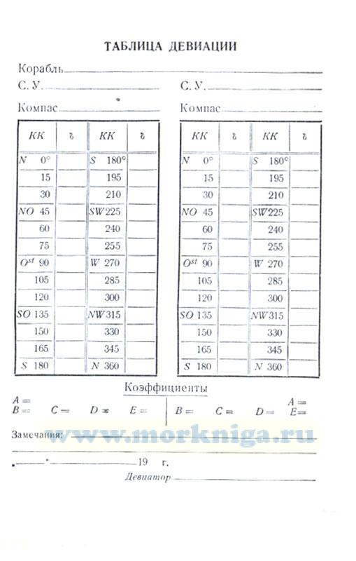 К дефлектору Колонга прилагается таблица девиации.
