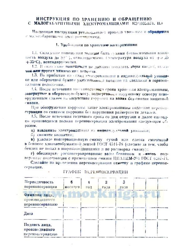 1.4. После истечения шестимесячного срока хранения электромашины, завернутые в оберточную бумагу, подвергаются наружному осмотру невооруженным глазом на отсутствие коррозии на валах без снятия защитной смазки.