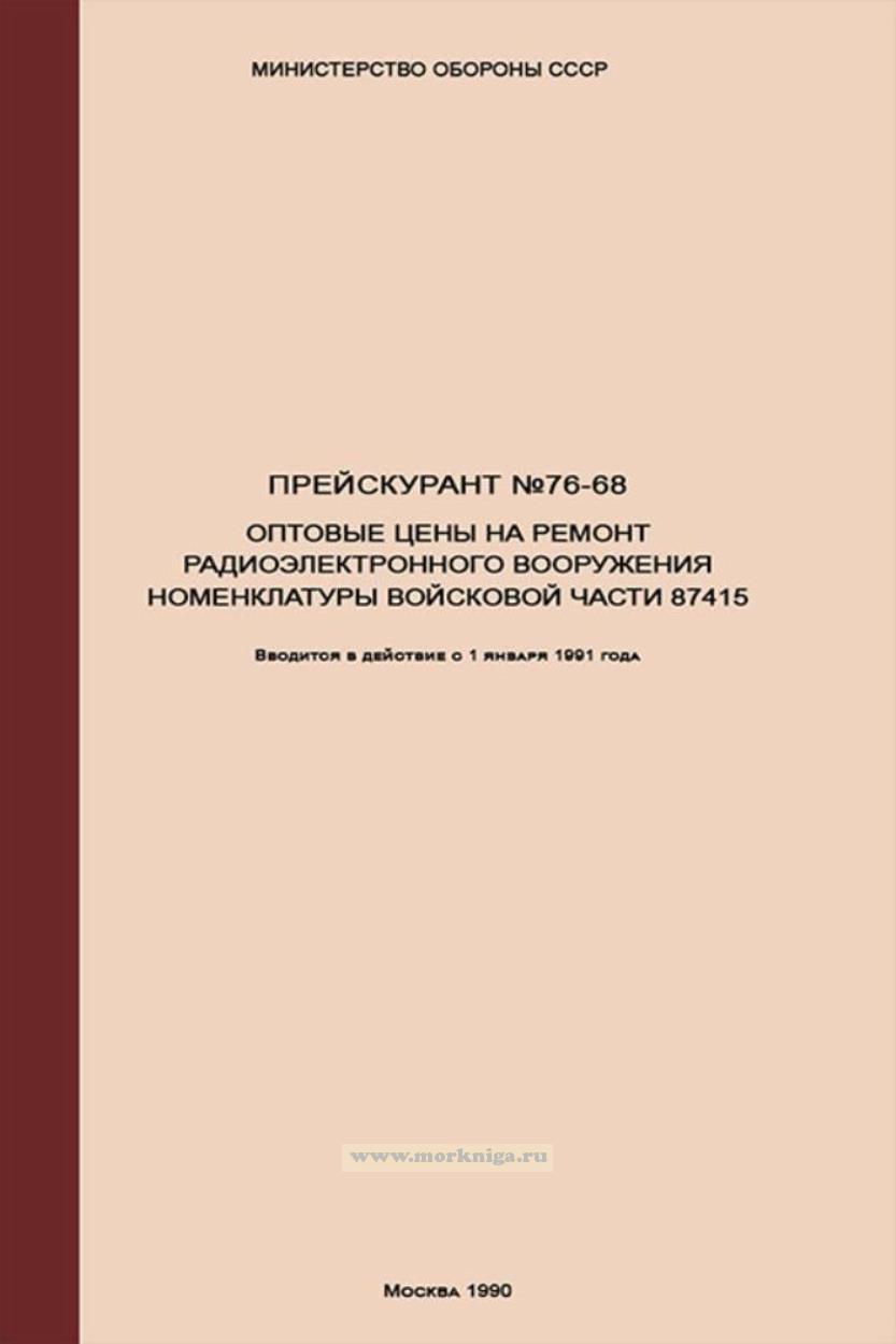 См. также Дополнительный прейскурант №76-68-1989/1. Оптовые цены на ремонт радиоэлектронного вооружения номенклатуры войсковой части 87415
