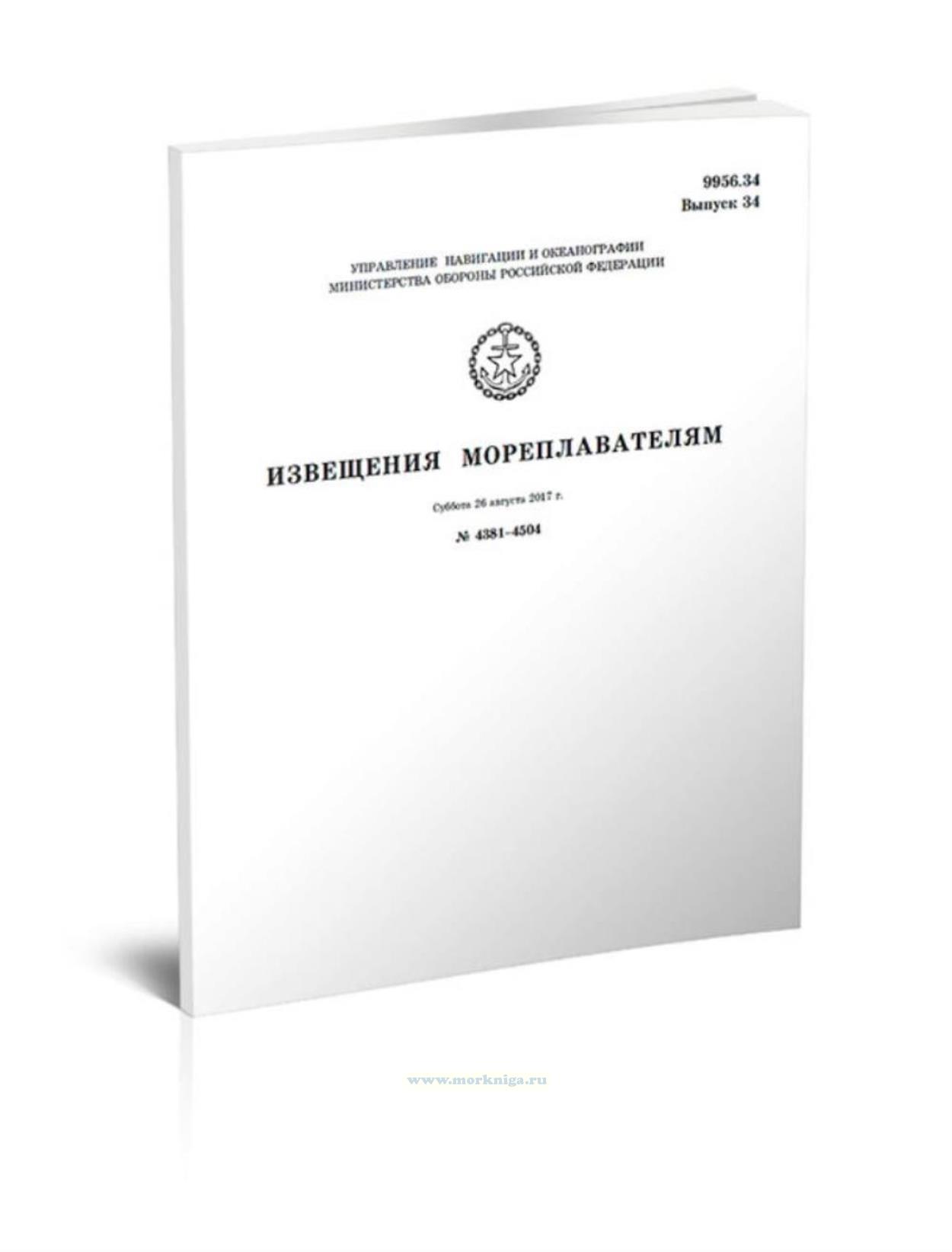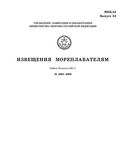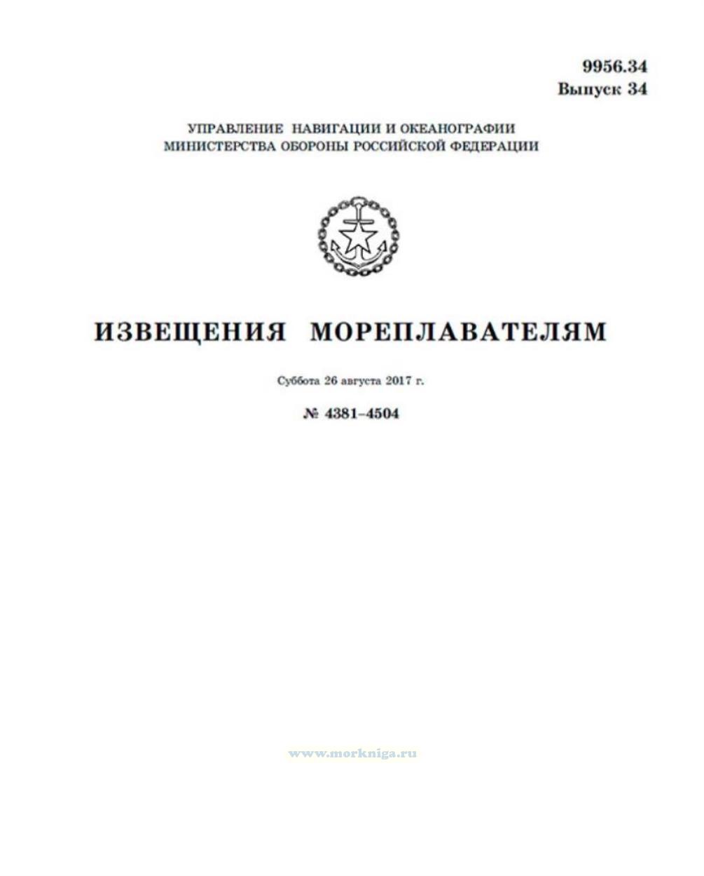 Извещения мореплавателям. Выпуск 34. № 4381-4504 (от 26 августа 2017 г.) Адм. 9956.34