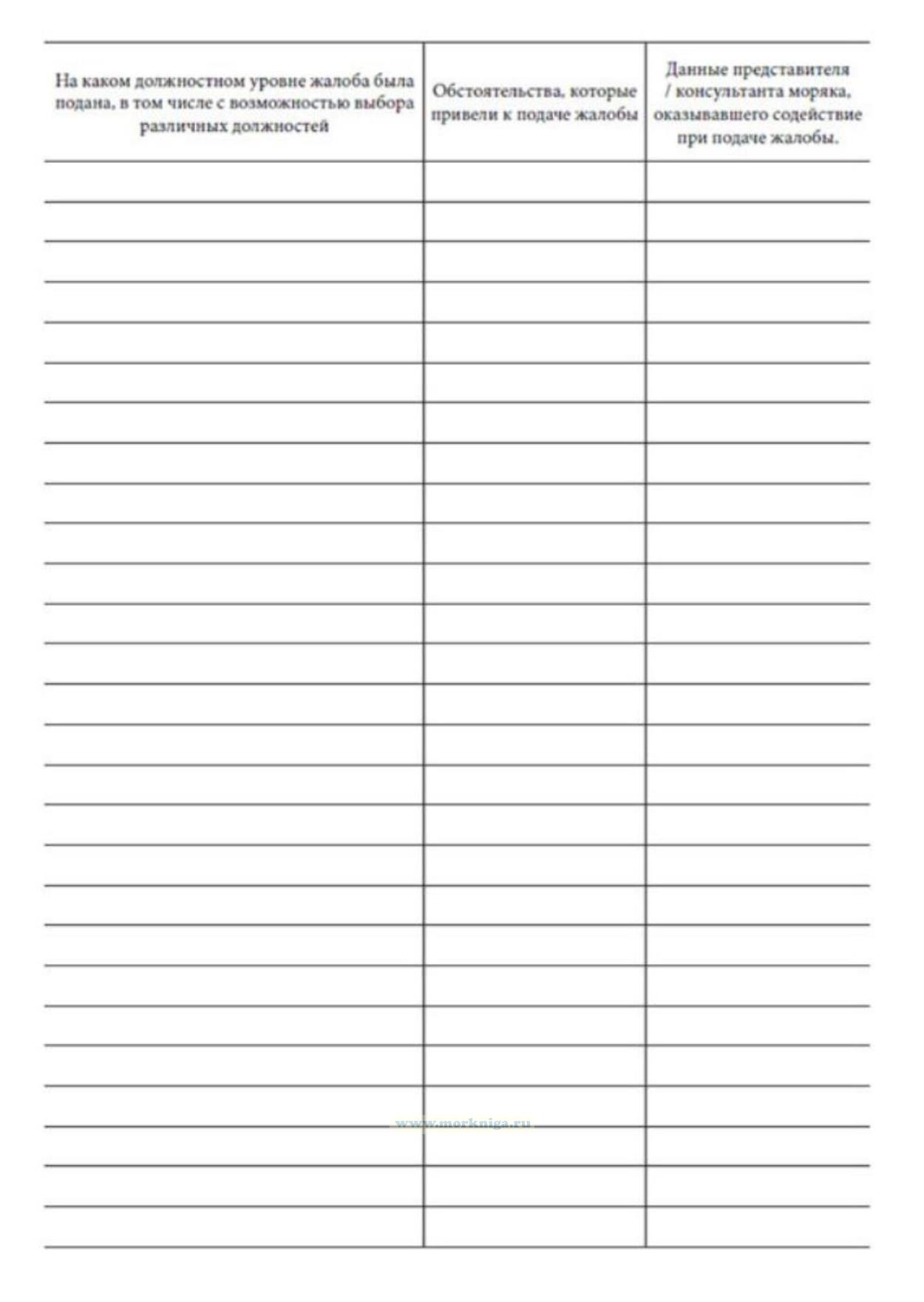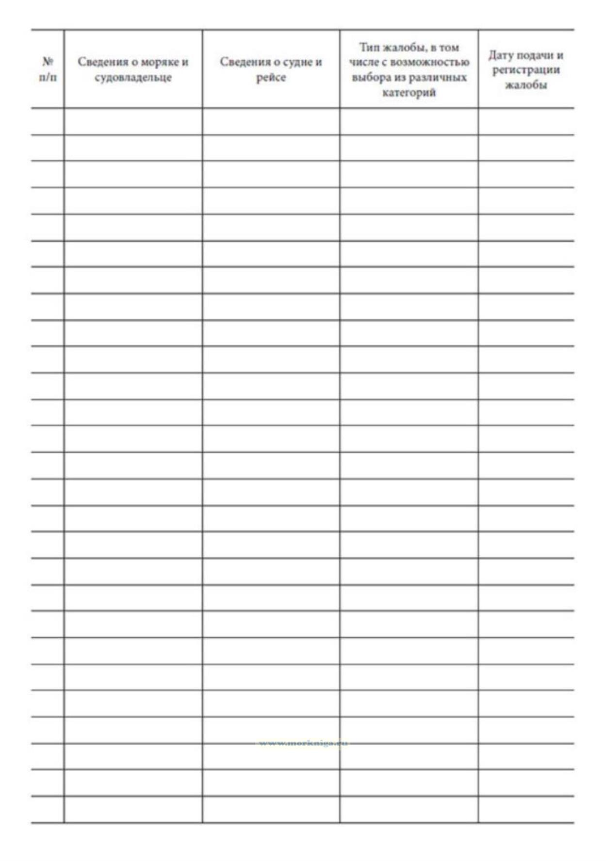 Согласно Порядка рассмотрения жалоб моряков на борту судна: жалоба на судне регистрируется в судовом журнале или в иных журналах (базах) учета, предусмотренные и разработанные судовладельцем в соответствии с требованиями главы IX приложения к Международной конвенции по охране человеческой жизни на море 1974 года и Международного кодекса по управлению безопасной эксплуатацией судов и предотвращением загрязнения