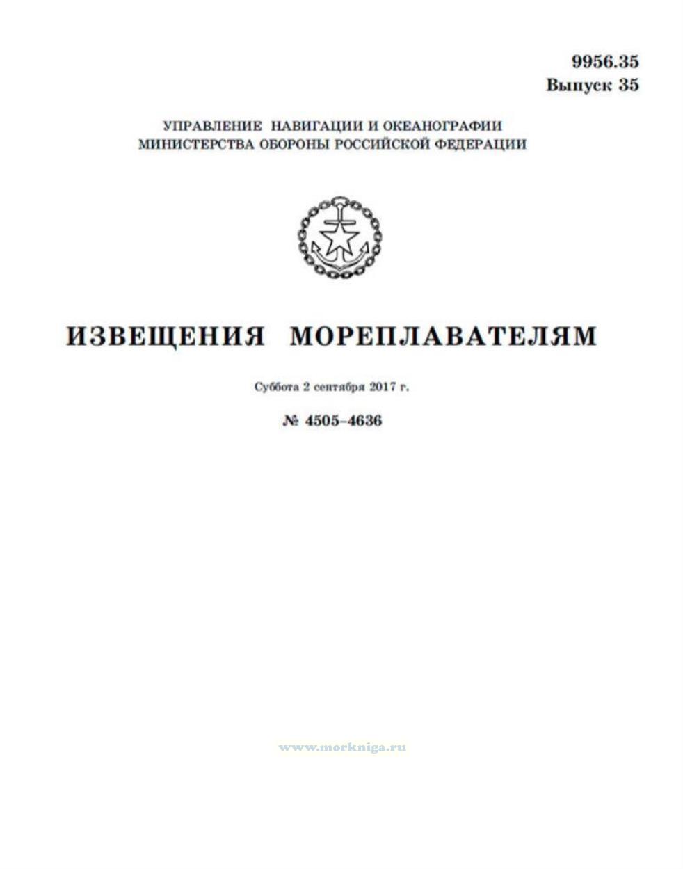 Извещения мореплавателям. Выпуск 35. № 4505-4636 (от 2 сентября 2017 г.) Адм. 9956.35