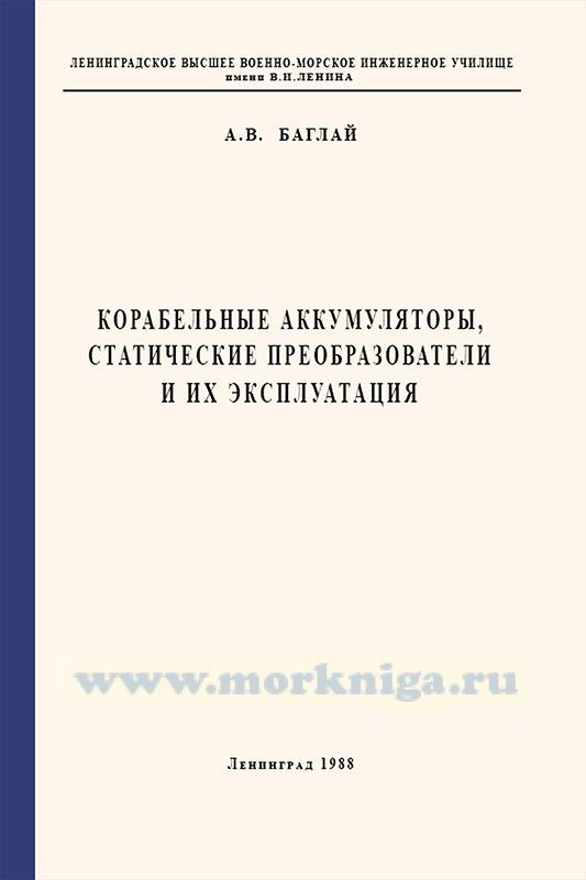 В учебном пособии изложены основы теории химических источников тока и статических преобразователей, устройство и принцип действия корабельных аккумуляторов и выпрямительных агрегатов, основные положения эксплуатации дано понятие об устройстве и принципе действия топливных элементов и инверторов.