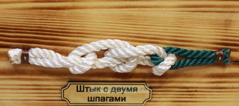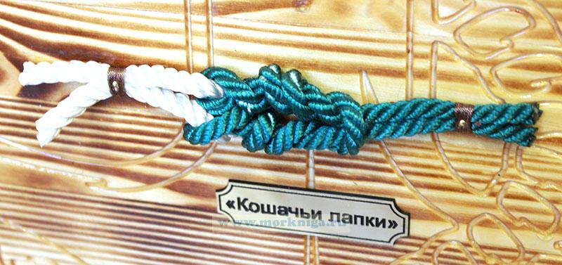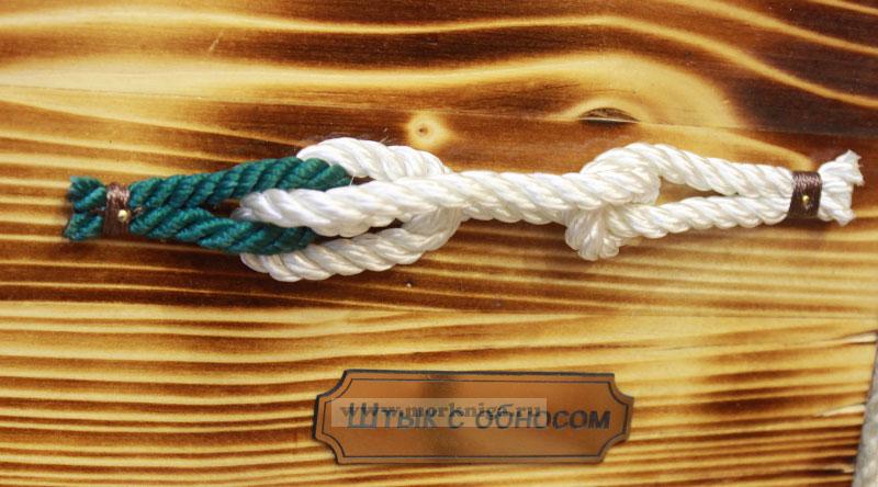 Представленный на фото содержит 24 морских узла. Для увеличения контраста и наглядности было принято решение использовать для узлов 2 цвета канатов - белый и зеленый.