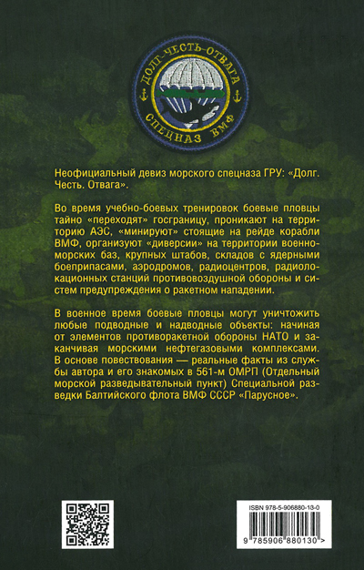 Неофициальный девиз морского спецназа ГРУ: «Долг. Честь. Отвага».