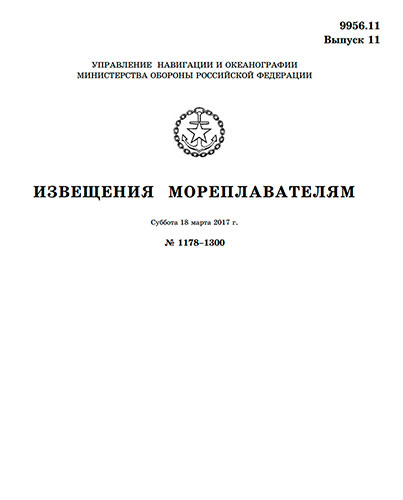 Извещения мореплавателям. Выпуск 11. № 1178-1300 (от 18 марта 2017 г.) Адм. 9956.11