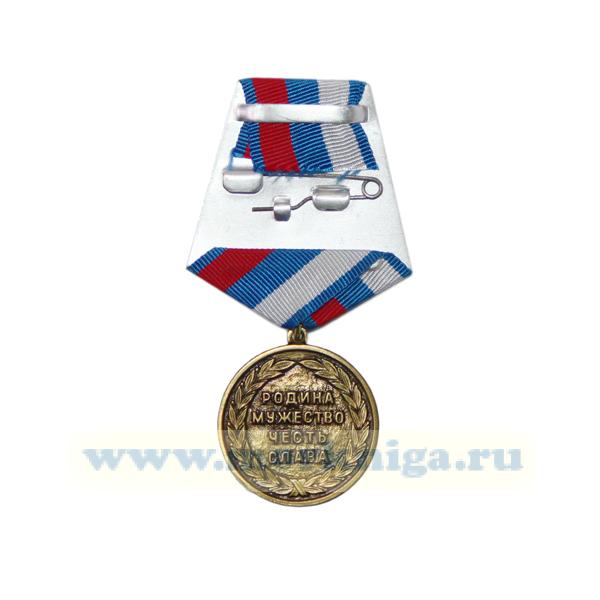 Медаль при помощи ушка и кольца соединяется с пятиугольной колодкой, обтянутой шёлковой лентой шириной 24 мм