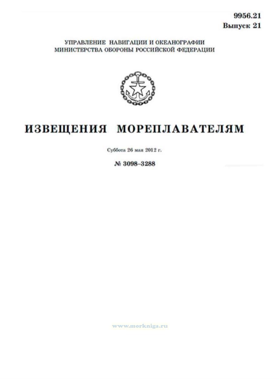 Извещения мореплавателям. Выпуск 21. № 3098-3288 (от 26 мая 2012 г.) Адм. 9956.21