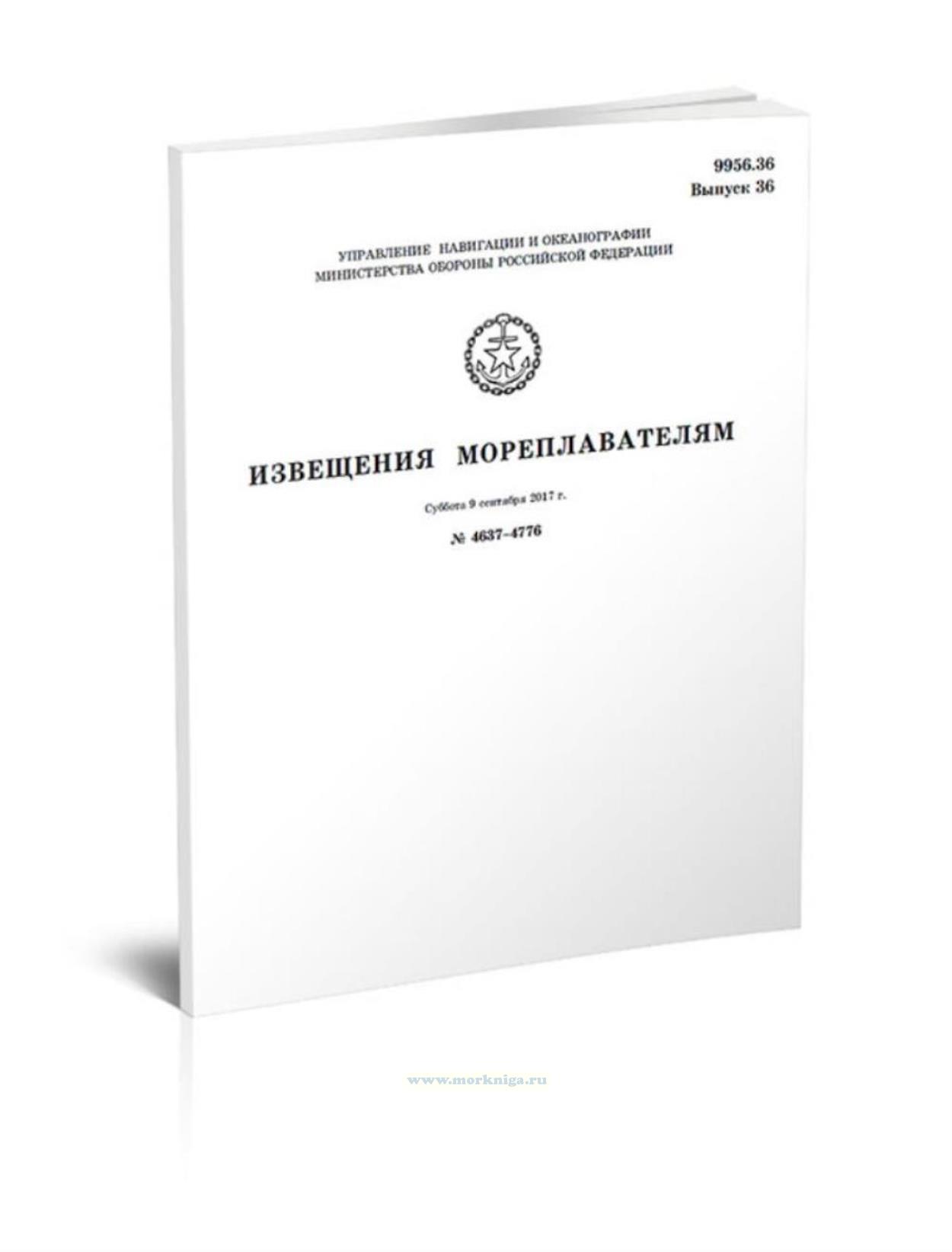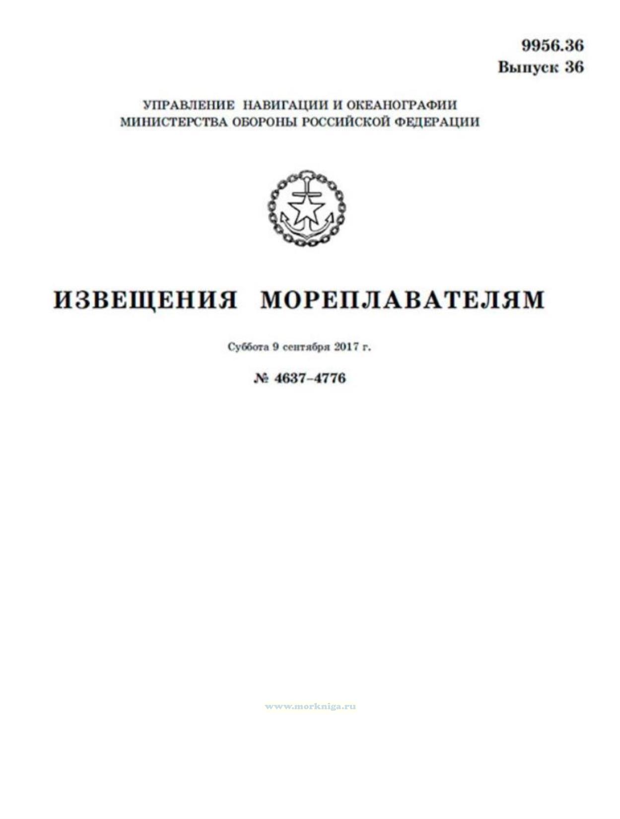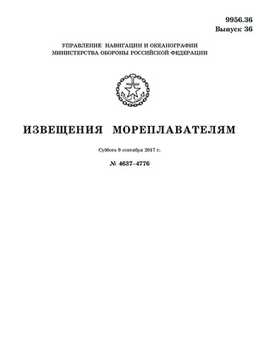 Извещения мореплавателям. Выпуск 36. № 4637-4776 (от 9 сентября 2017 г.) Адм. 9956.36