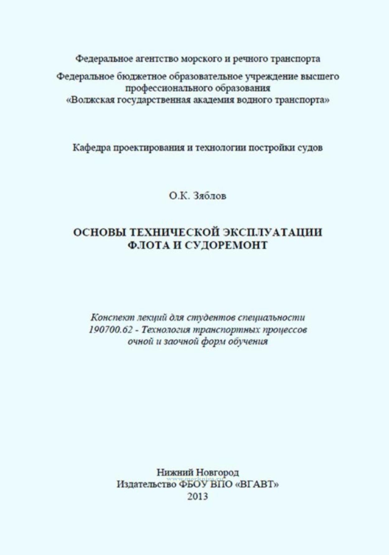 Для студентов, обучающихся по специальности 190700.62 «Технология транспортных процессов» и смежным специальностям, изучающим процессы технической эксплуатации флота: 180405.65 «Эксплуатация судовых энергетических установок», 190600.62 «Эксплуатация транспортно-технологических машин и комплексов» и т.д.