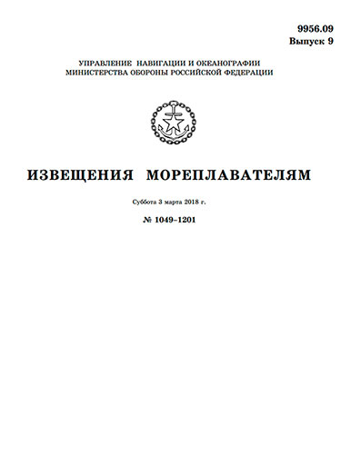 Извещения мореплавателям. Выпуск 9. № 1049-1201 (от 3 марта 2018 г.) Адм. 9956.09