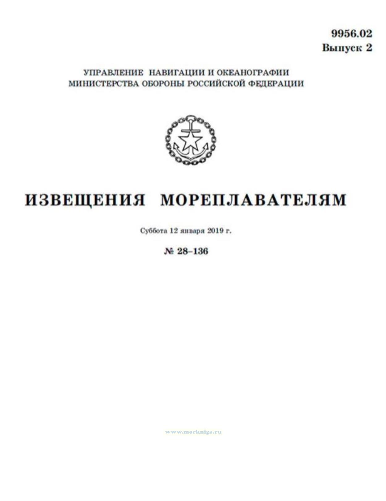 Извещения мореплавателям. Выпуск 2. № 28-136 (от 12 января 2019 г.) Адм. 9956.02