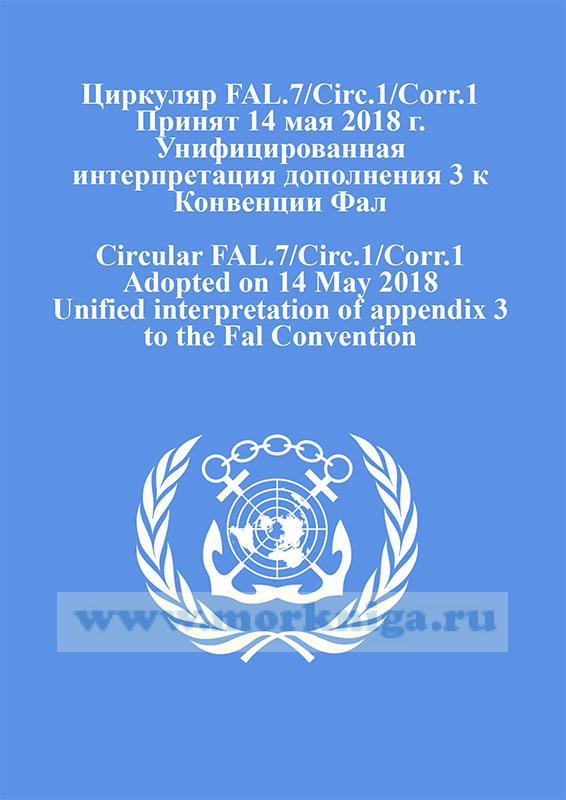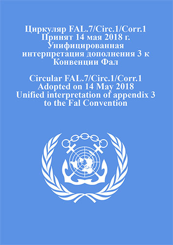 Циркуляр FAL.7/Circ.1/Соrr.1 Унифицированная интерпретация дополнения 3 к Конвенции ФАЛ/ Circular FAL.7/Circ.1/Corr.1 Unified interpretation of appendix 3 to the FAL Convention включен в Сборник № 61 резолюций ИМО/ Collection No.61 of IMO Resolutions