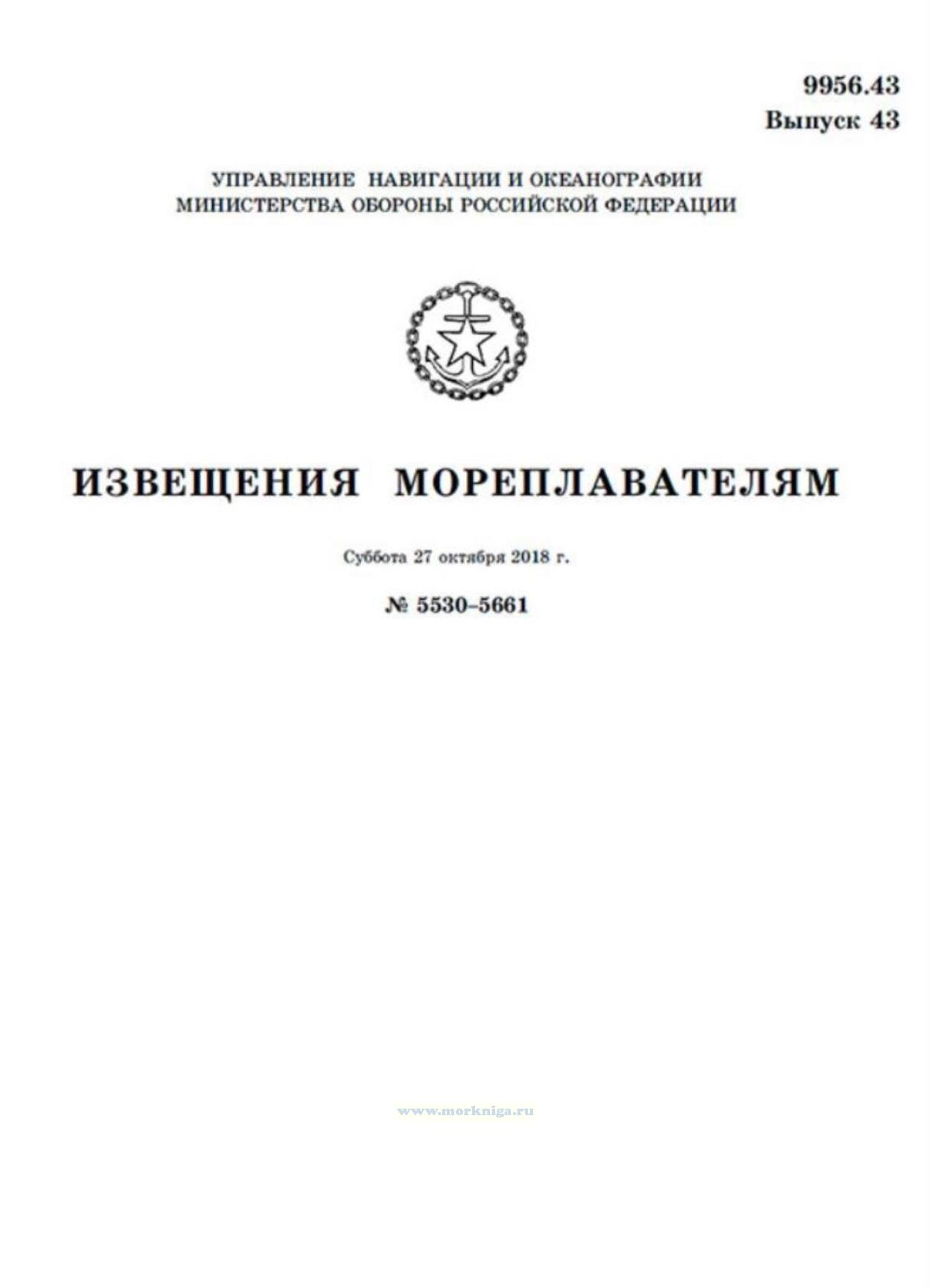Извещения мореплавателям. Выпуск 43. № 5530-5661 (от 27 октября 2018 г.) Адм. 9956.43