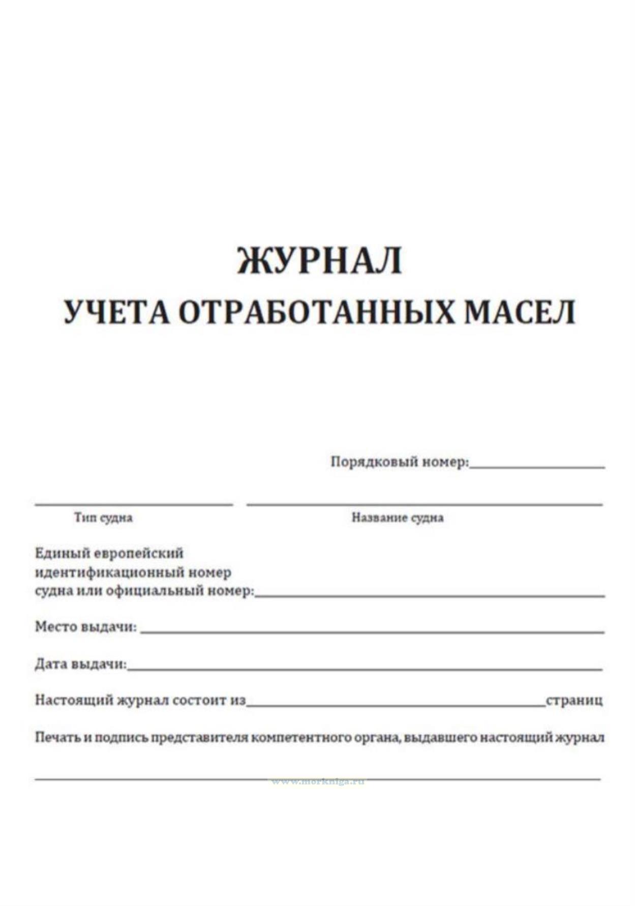 Форма журнала учета отработанных масел соответствует Приложению №9 к ЕПСВВП 5 - Европейские Правила Судоходства по Внутренним Водным Путям, а также Приложению №9 к Основным положениям о плавании по Дунаю (ОППД)