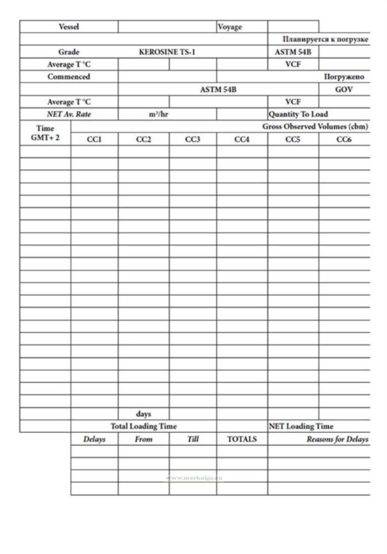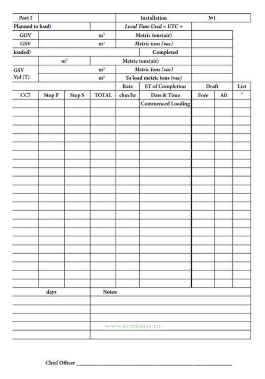 Форма журнала погрузки (Cargo Loading Log) соответствует Приложению 4 к Технологии морских перевозок наливных грузов и работы нефтяного терминала.