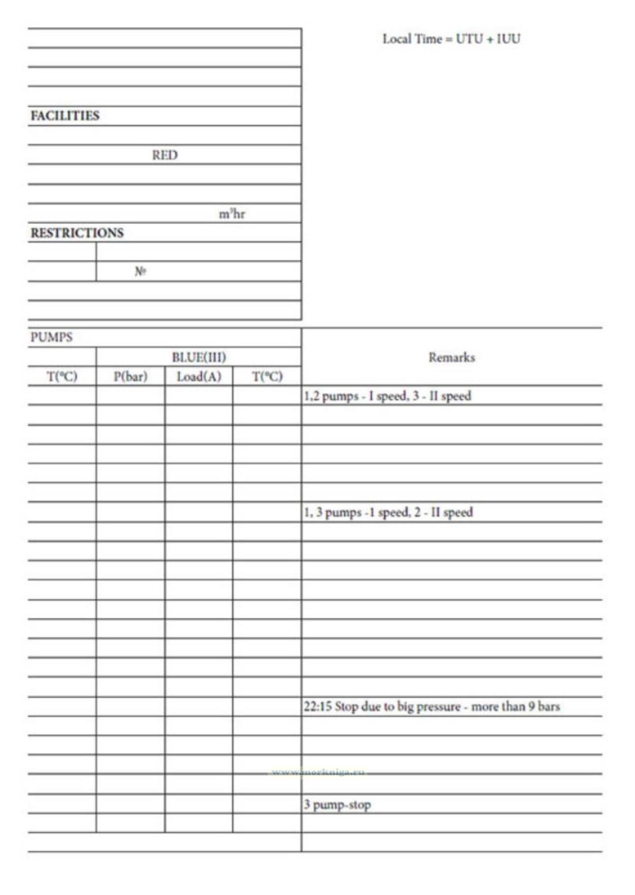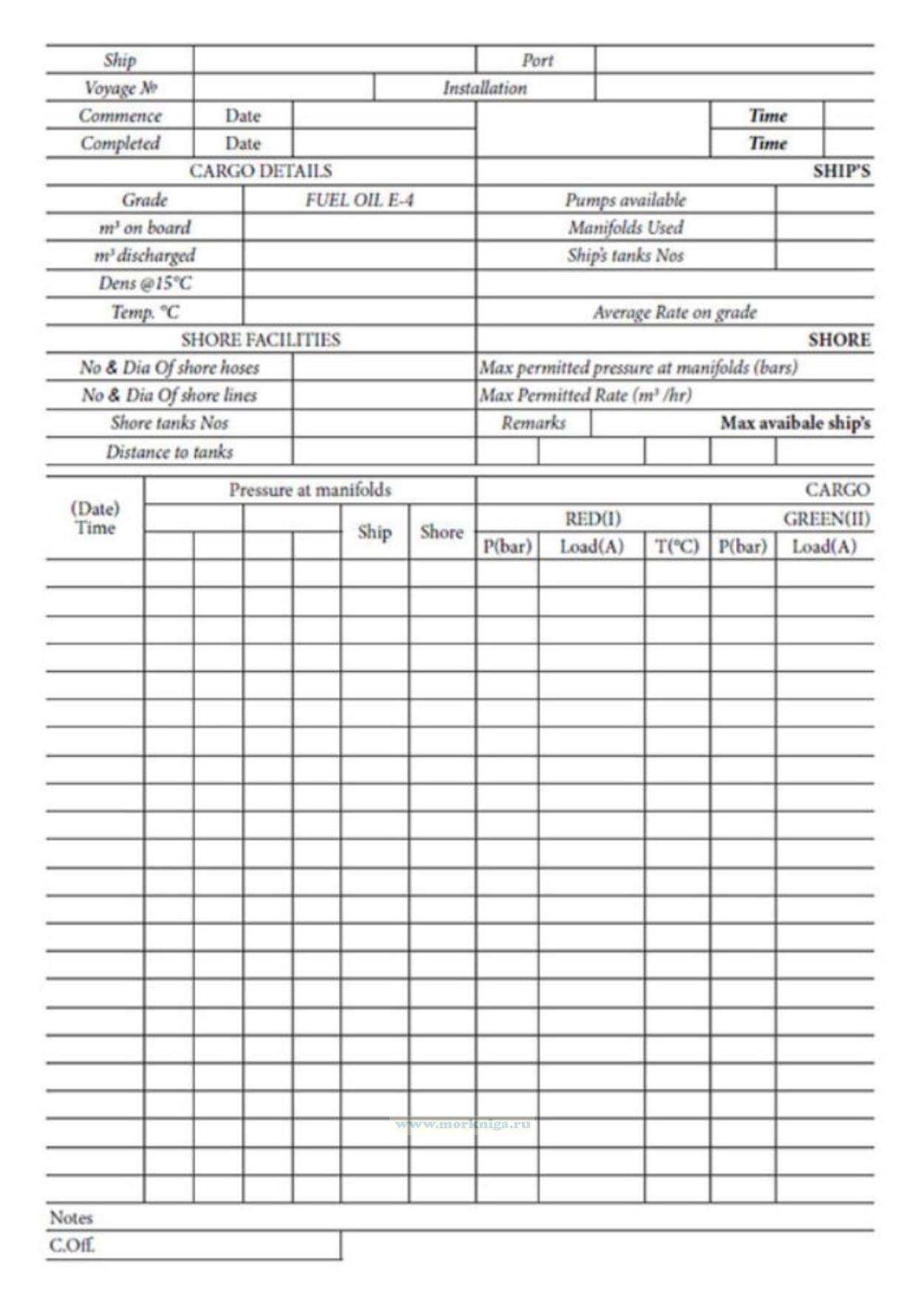 Форма журнала Cargo Pumping Log соответствует Приложению 7 к Технологии морских перевозок наливных грузов и работы нефтяного терминала.