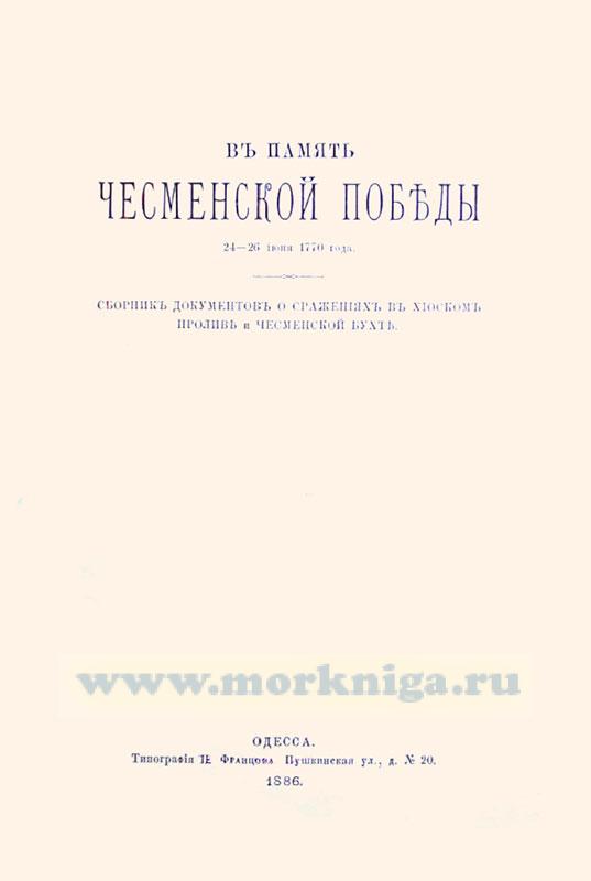 Сборник документов о сражениях в Хиоском проливе и Чесменской бухте в память Чесменской победы 24-26 июня 1770 года.