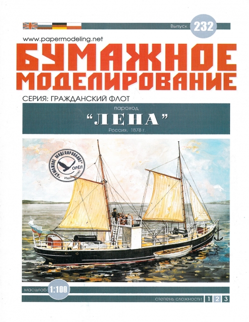 Модель парохода "Лена" разработана по состоянию на 1878 год. Не очень сложная модель придётся по душе как опытным, так и начинающим моделистам.